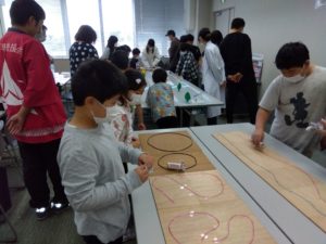 講師の学生からは「自宅に持ち帰って完成したチビもそ君の動くスピードや進む方向には違いがでるのは理由がある。なぜ進むのが遅いのか、どうしたら早く進むのかを考えながら手直して遊んで見てください」と説明がありました。