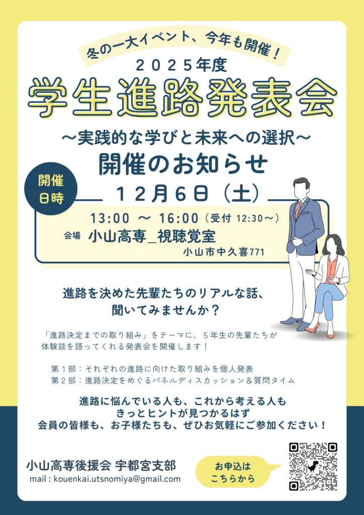 【12月6日(土)開催】後援会宇都宮支部2025年度 学生進路発表会のご案内