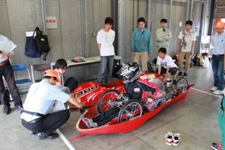 【「第5回Hondaエコマイレッジチャレンジ2013もてぎ大会」報告(機械工作研究部)】 2013年7月4日 6月29日(土)、「第5回Hondaエコマイレッジチャレンジ2013もてぎ大会」がツインリンクもてぎで開催され、機械工作研究部が参加しました。記録はあまり伸びませんでしたが、完走を果たしました。記録は339km/リットル です。たくさんのOBが応援に駆けつけてくれ、大いに励みになり、有意義な大会になりました。今後は10月に開催される全国大会に向け、努力していこうと思いますので、引き続き応援の程、よろしくお願いいたします。
