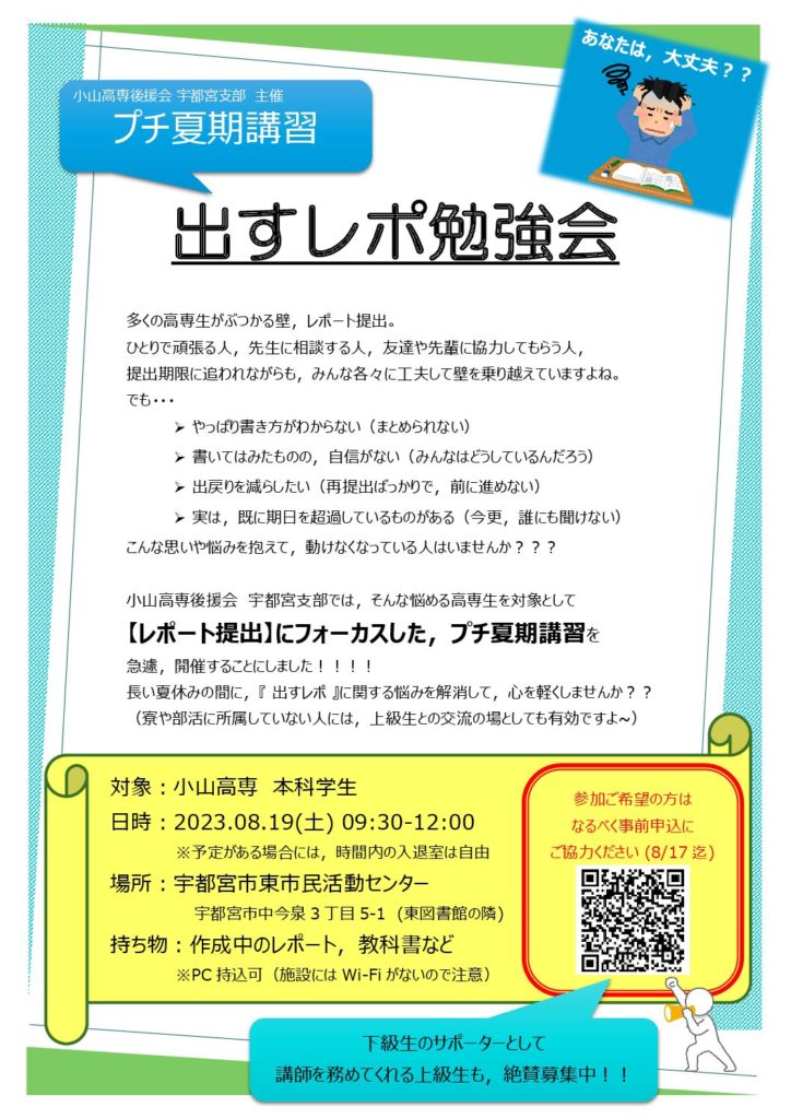 【8月19日(土)開催】宇都宮支部主催 プチ夏期講習会「出すレポ勉強会」のお知らせ